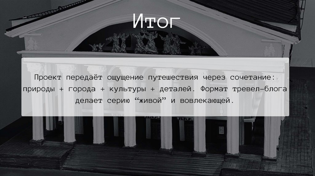 природы + города + культуры + деталей. Формат тревел-блога