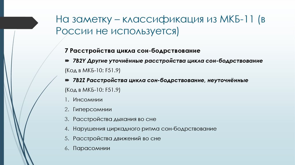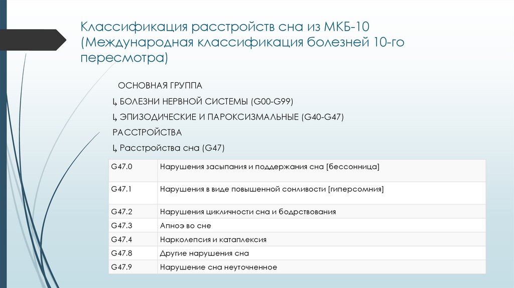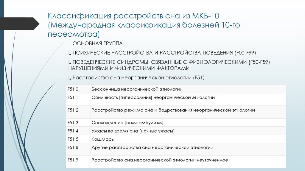 Классификация расстройств сна из МКБ-10(Международная классификация болезней 10-го