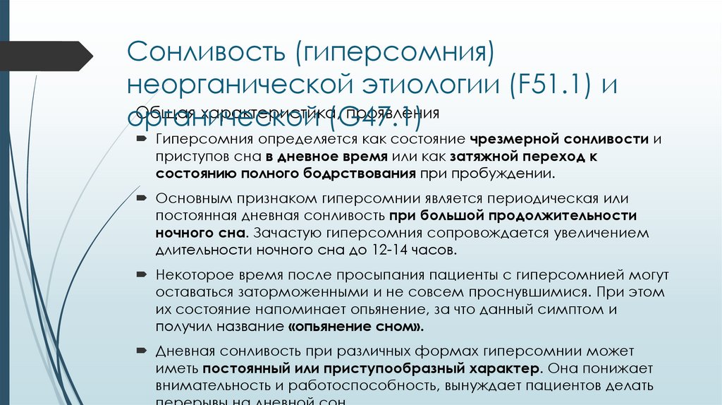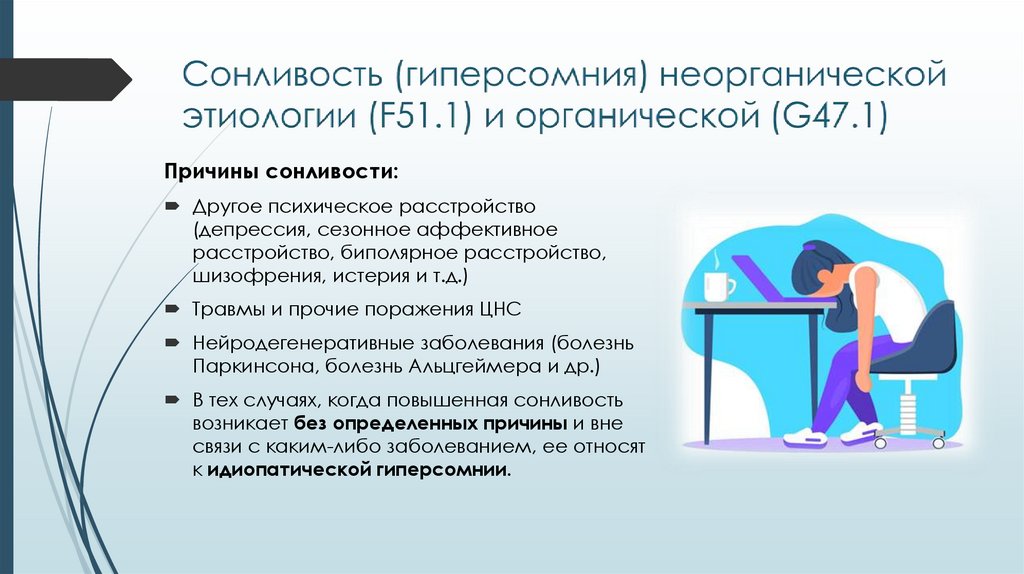 Сонливость [гиперсомния] неорганической этиологии