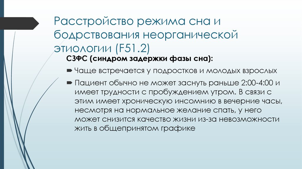 ↳ Расстройства сна неорганической этиологии (F51)