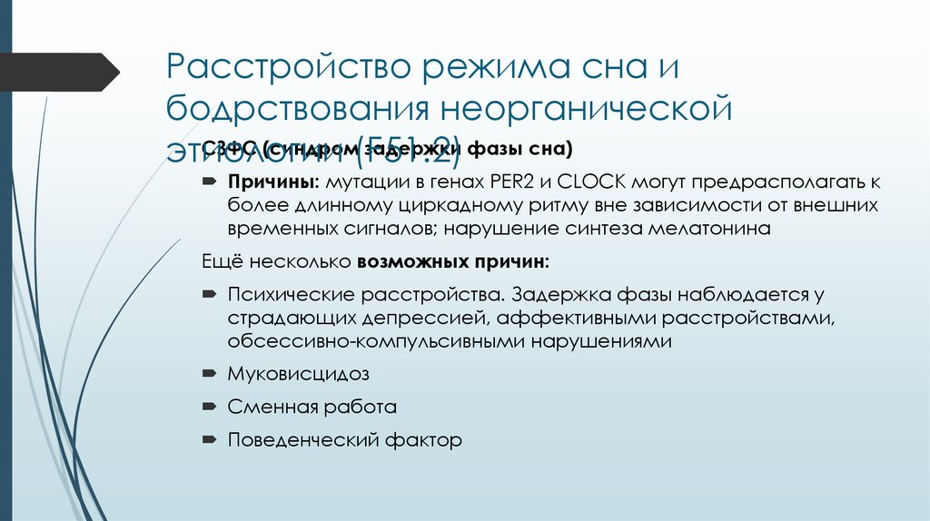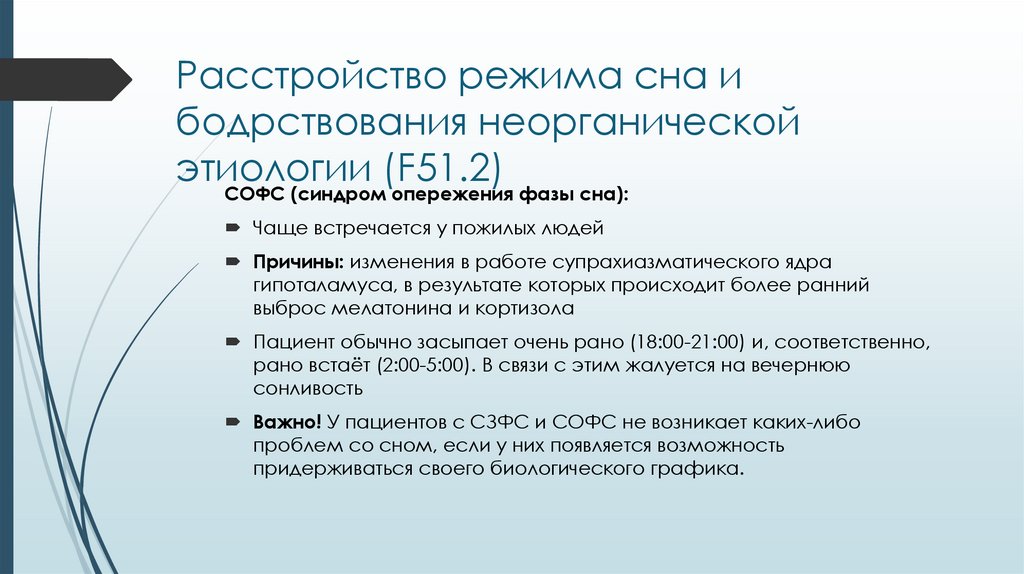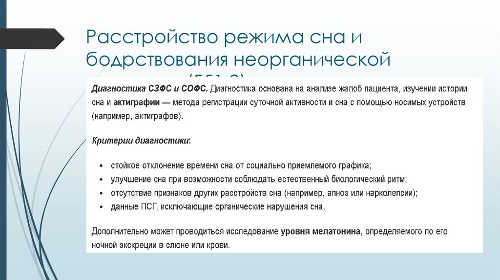 Расстройство режима сна и бодрствования неорганической этиологии