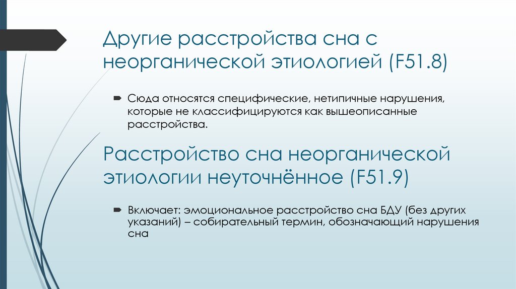 Другие расстройства сна неорганической этиологии