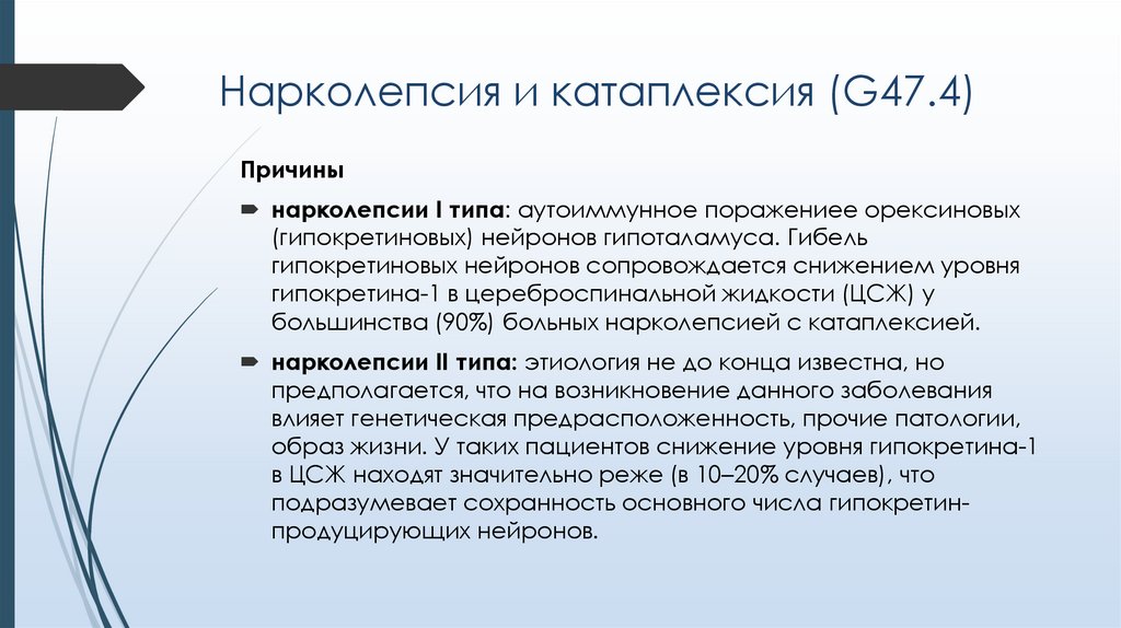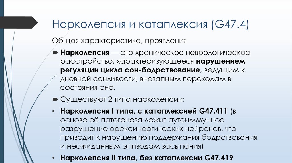 Нарколепсия и катаплексия (G47.4)Причины