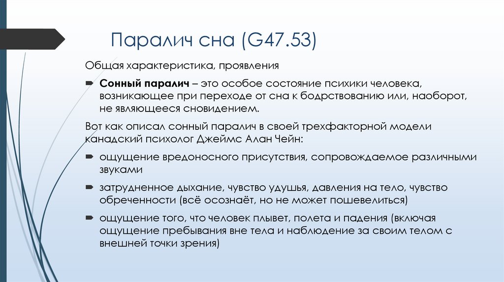 Паралич сна (G47.53)Общая характеристика, проявления