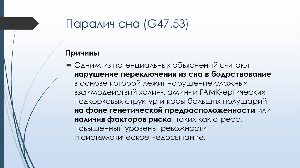 Паралич сна (G47.53)Причины