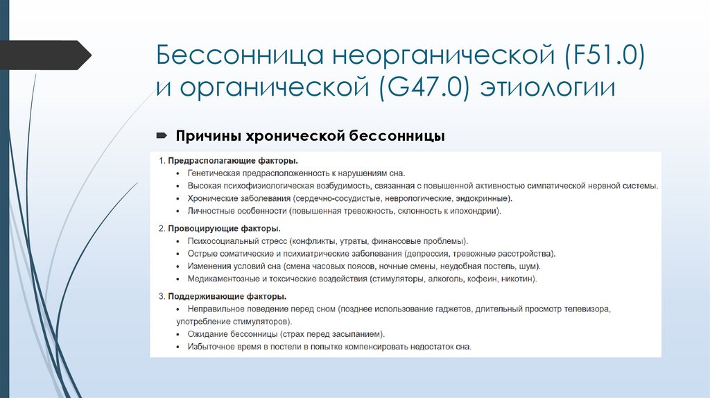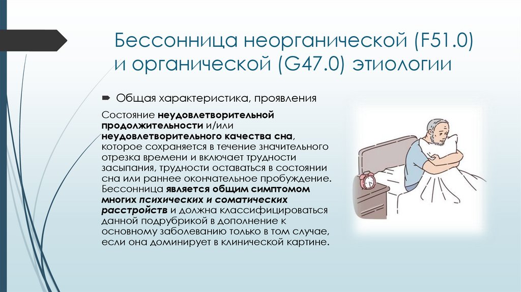 Бессонница неорганической (F51.0)и органической (G47.0) этиологии