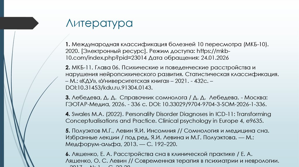 5. Полуэктов М.Г., Левин Я.И. Инсомния // Сомнология и медицина сна.