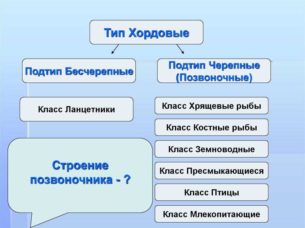 Б) Подтипы: Бесчерепные, асцидии, черепные/позвоночные