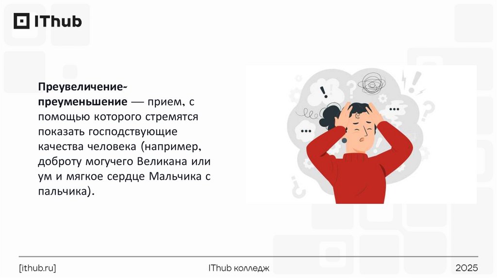 преувеличение-преуменьшение, акцентирование,