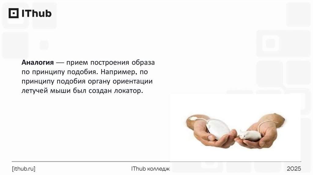 Аналогия — прием построения образапо принципу подобия. Например, по