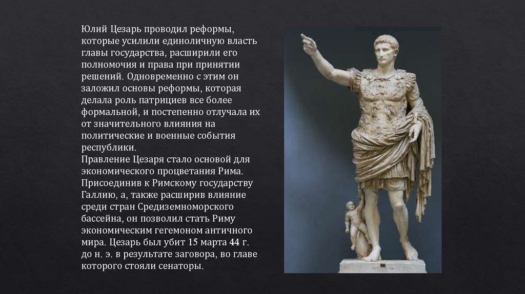 Юлий Цезарь проводил реформы,которые усилили единоличную власть