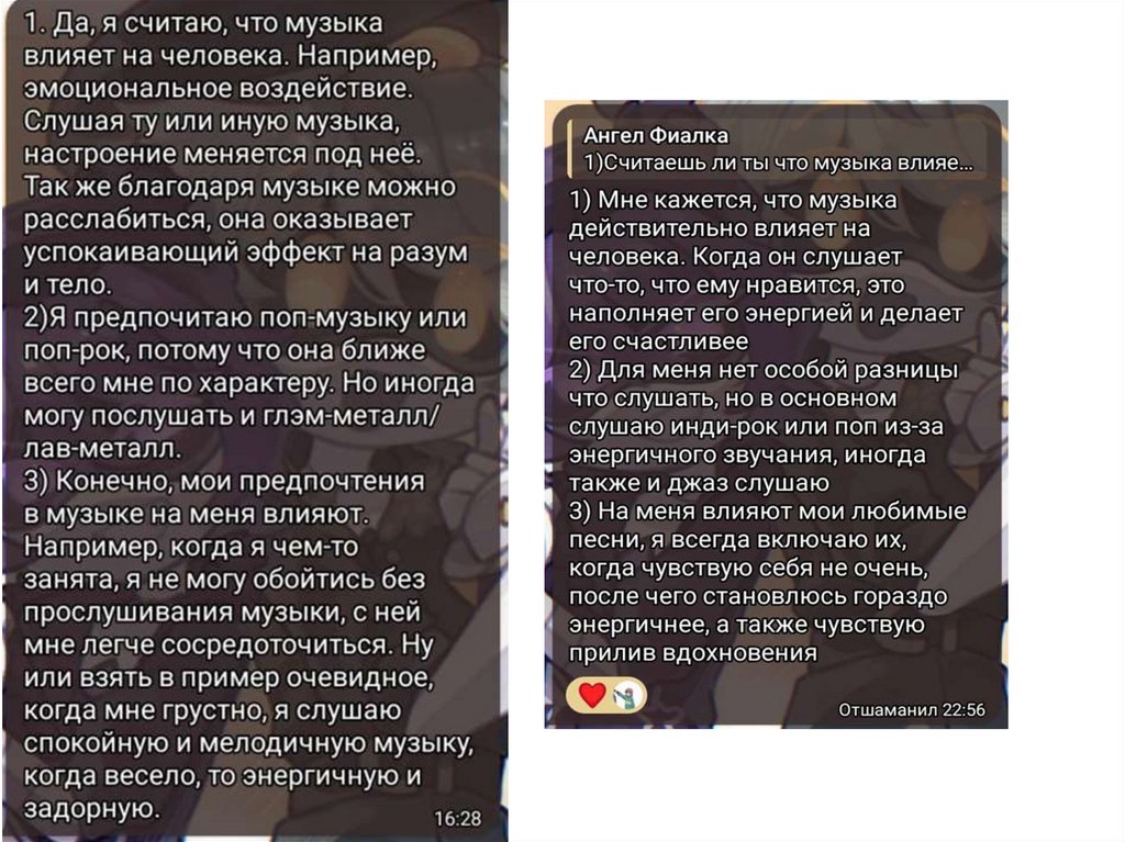 ВОПРОСЕ Я УЗНАЛА, ЧТО ТОЛЬКО НА 15 ЧЕЛОВЕК ВЛИЯЕТ МУЗЫКА.
