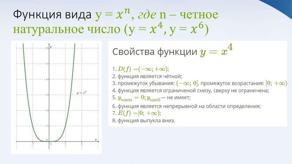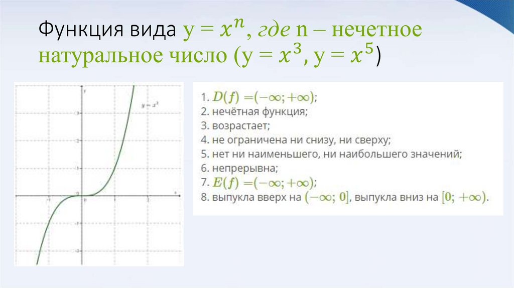 1. Степенная функция с натуральным и целым показателем.