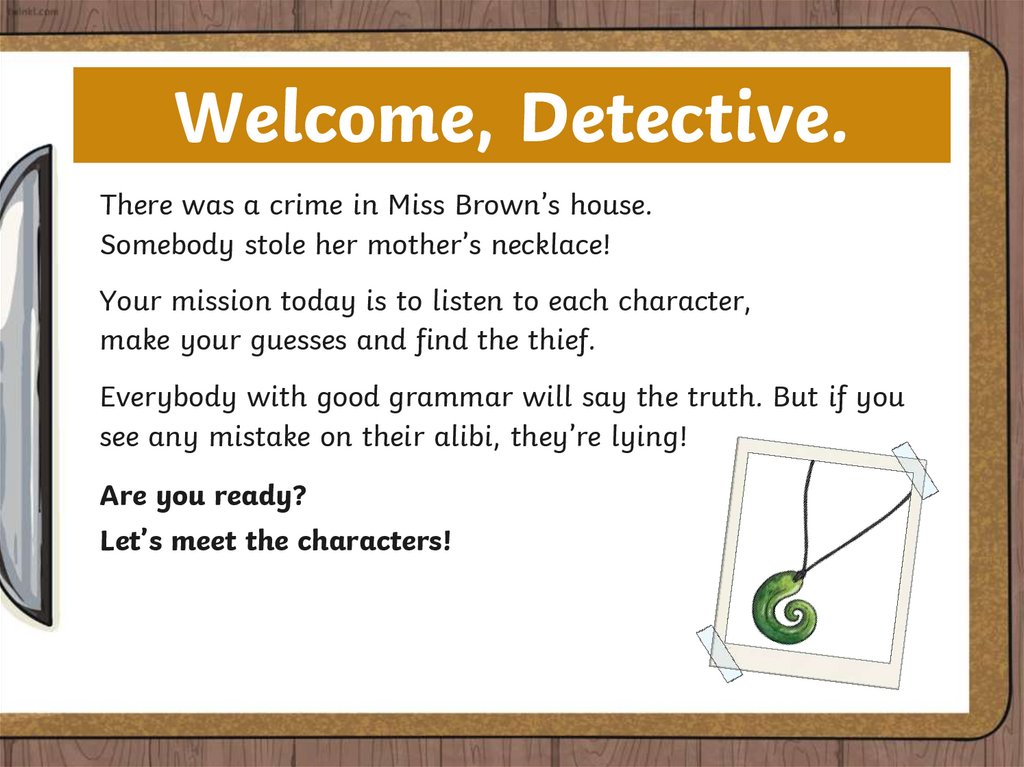 Welcome, Detective.There was a crime in Miss Brown’s house.