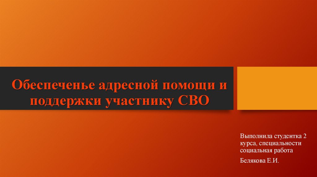 1. Обеспеченье адресной помощи и поддержки участнику СВО