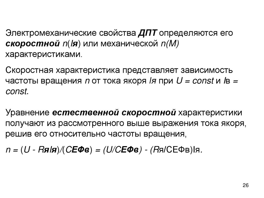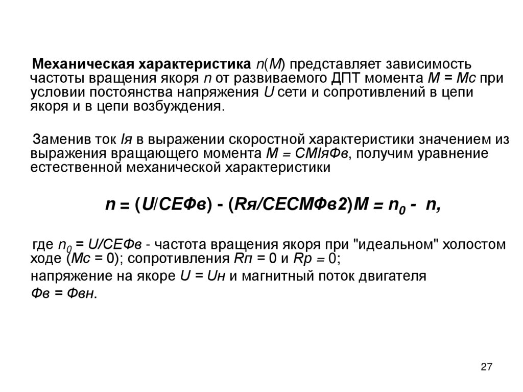 Электромеханические свойства ДПТ определяются егоскоростной n(Iя) или механической n(M)