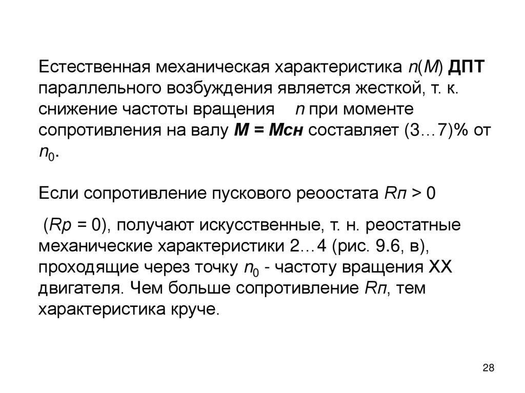Естественная механическая характеристика n(M) ДПТпараллельного возбуждения является жесткой, т. к.