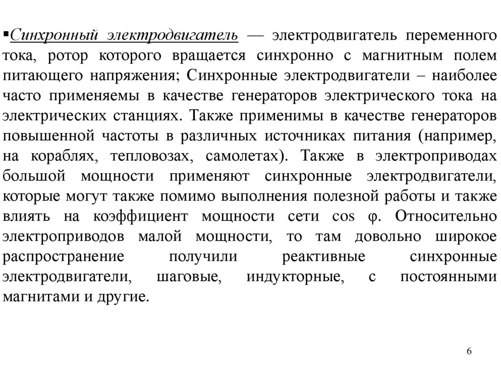 питающего напряжения; Синхронные электродвигатели – наиболее