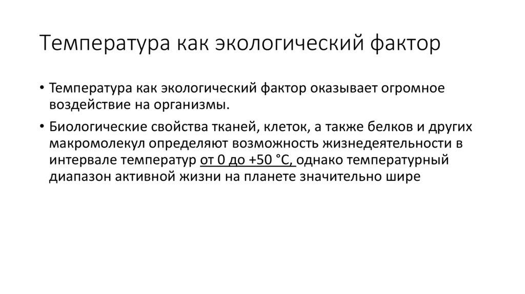 • Температура как экологический фактор оказывает огромноевоздействие на организмы.