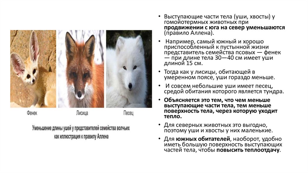• 1) у мелких животных площадь поверхности тела больше его объема;