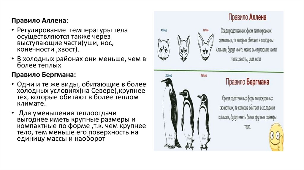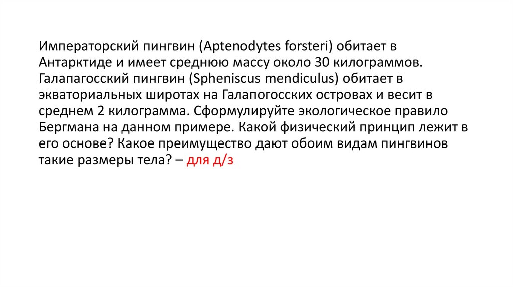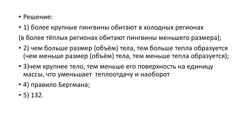 • Решение:• 1) более крупные пингвины обитают в холодных регионах