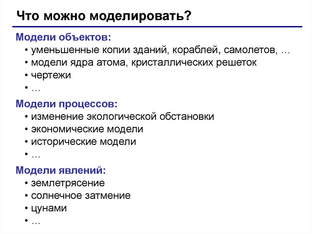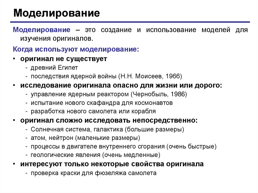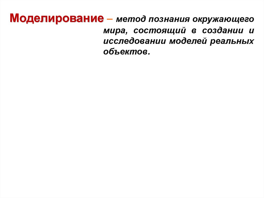 Моделирование – метод познания окружающегомира, состоящий в создании и