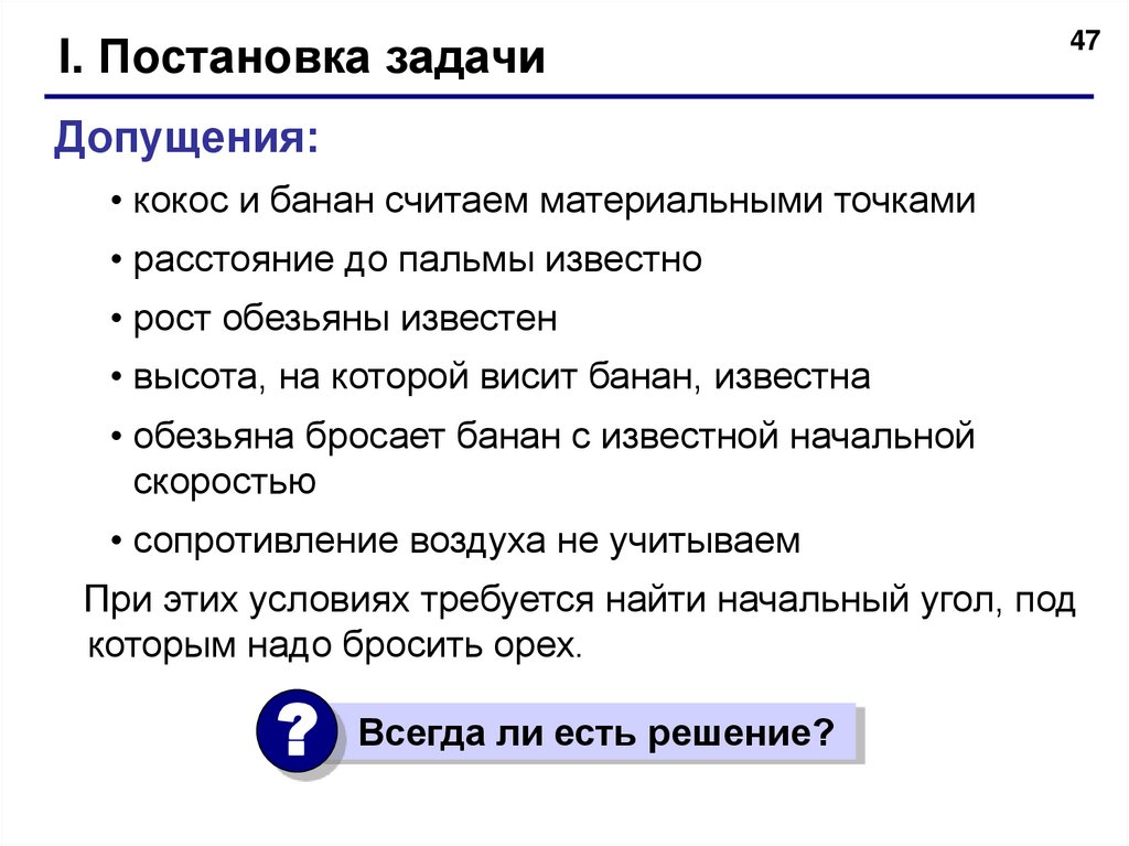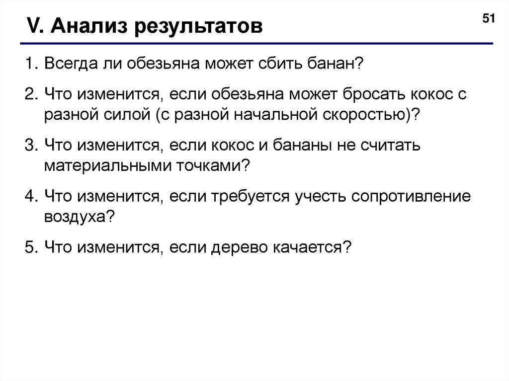V. Анализ результатов1. Всегда ли обезьяна может сбить банан?
