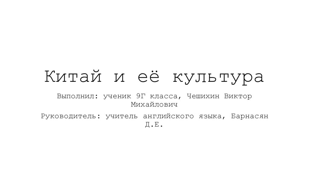 1. Китай и её культура