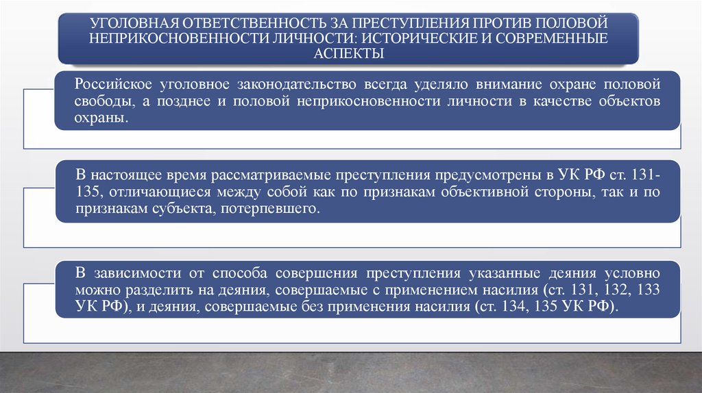 УГОЛОВНАЯ ОТВЕТСТВЕННОСТЬ ЗА ПРЕСТУПЛЕНИЯ ПРОТИВ ПОЛОВОЙНЕПРИКОСНОВЕННОСТИ ЛИЧНОСТИ: ИСТОРИЧЕСКИЕ И СОВРЕМЕННЫЕ