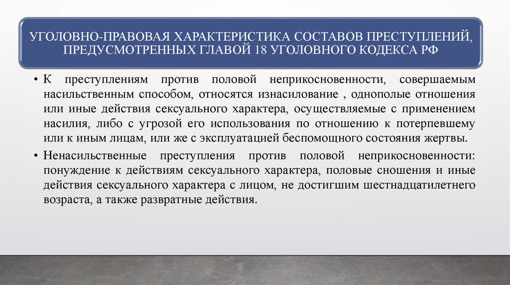 УК РФ), и деяния, совершаемые без применения насилия (ст. 134, 135 УК РФ).