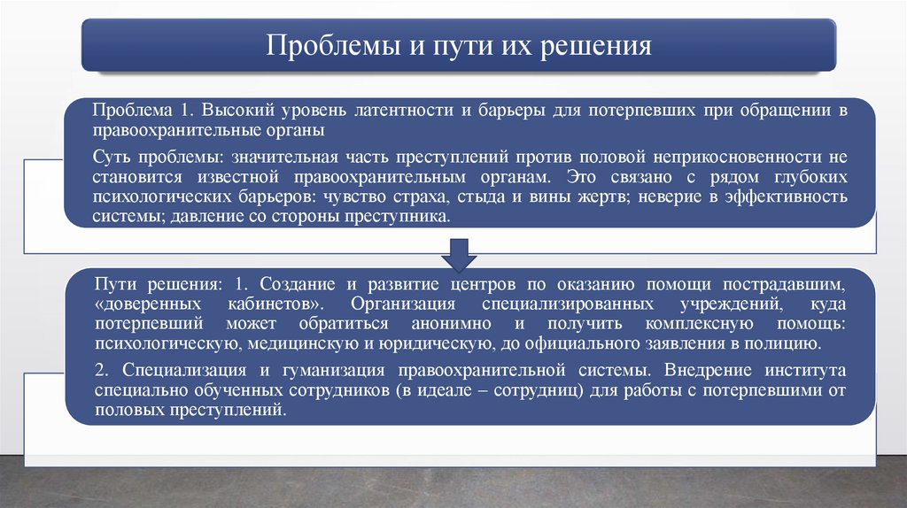 Проблемы и пути их решенияПроблема 1. Высокий уровень латентности и барьеры для потерпевших при обращении в