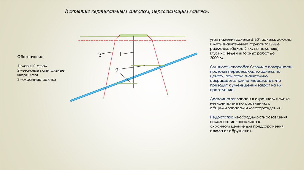 Вскрытие вертикальным стволом, расположенным в висячем бокузалежи