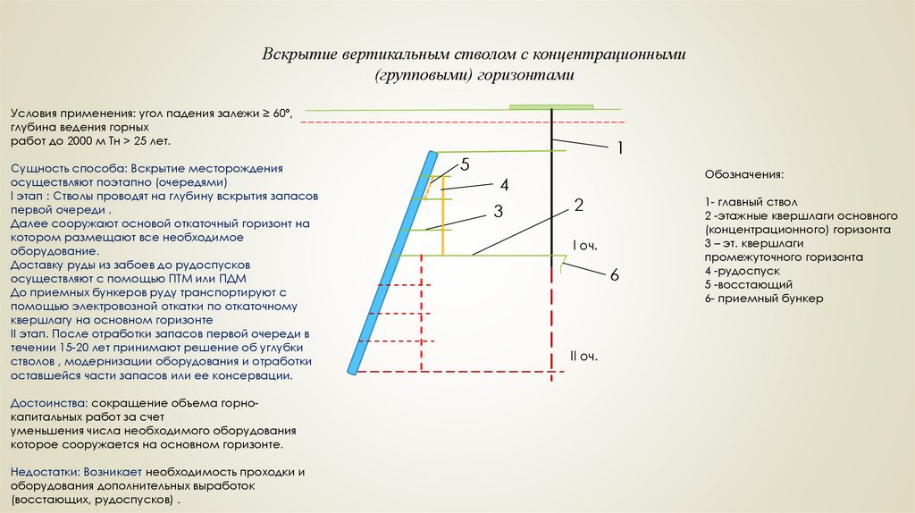 Вскрытие вертикальным стволом с концентрационными(групповыми) горизонтами