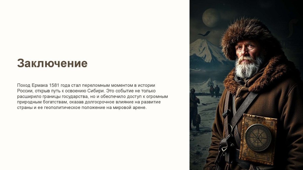 ЗаключениеПоход Ермака 1581 года стал переломным моментом в истории
