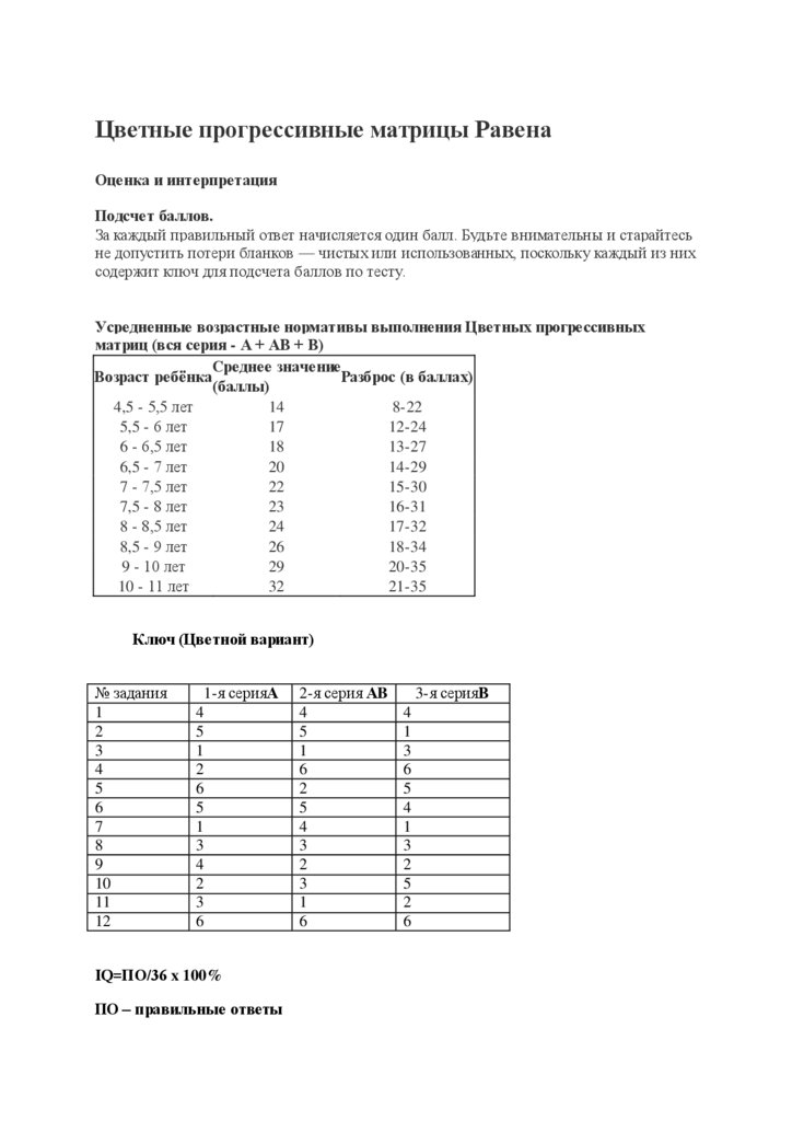 Цветные прогрессивные матрицы РавенаОценка и интерпретация