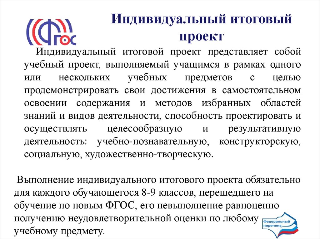 1. ПОЛОЖЕНИЕ об индивидуальном итоговом проекте учащегося по ФГОС ООО (проект)