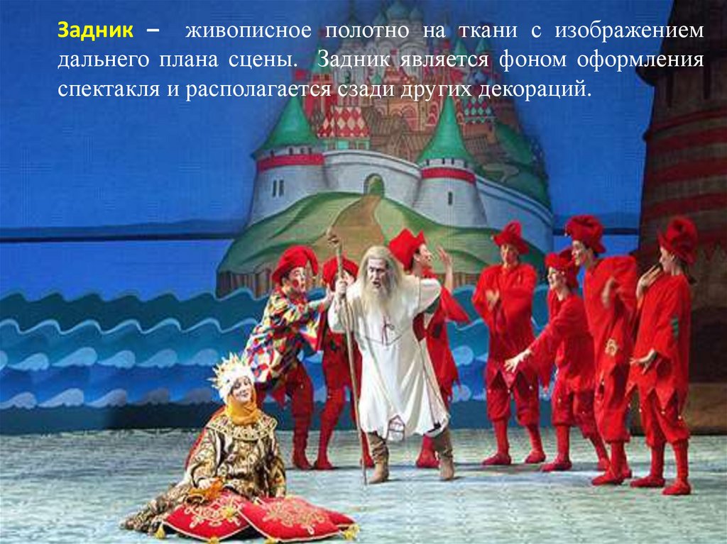 Задник – живописное полотно на ткани с изображениемдальнего плана сцены. Задник является фоном оформления