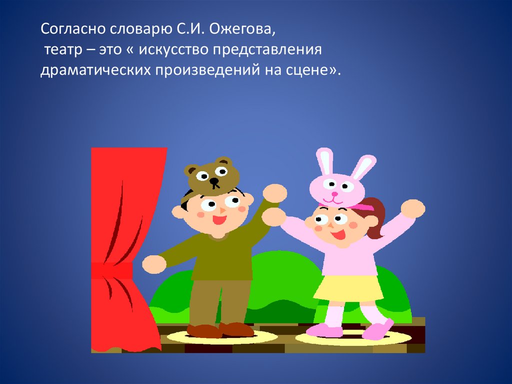 Согласно словарю С.И. Ожегова,театр – это « искусство представления