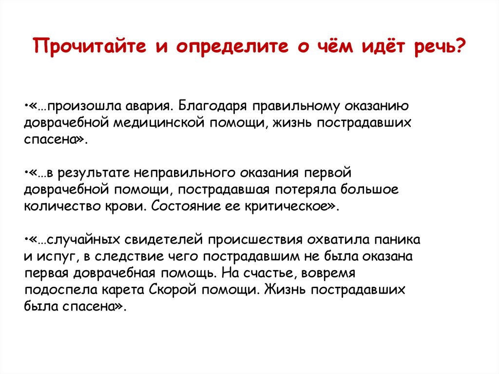 •«…произошла авария. Благодаря правильному оказаниюдоврачебной медицинской помощи, жизнь пострадавших
