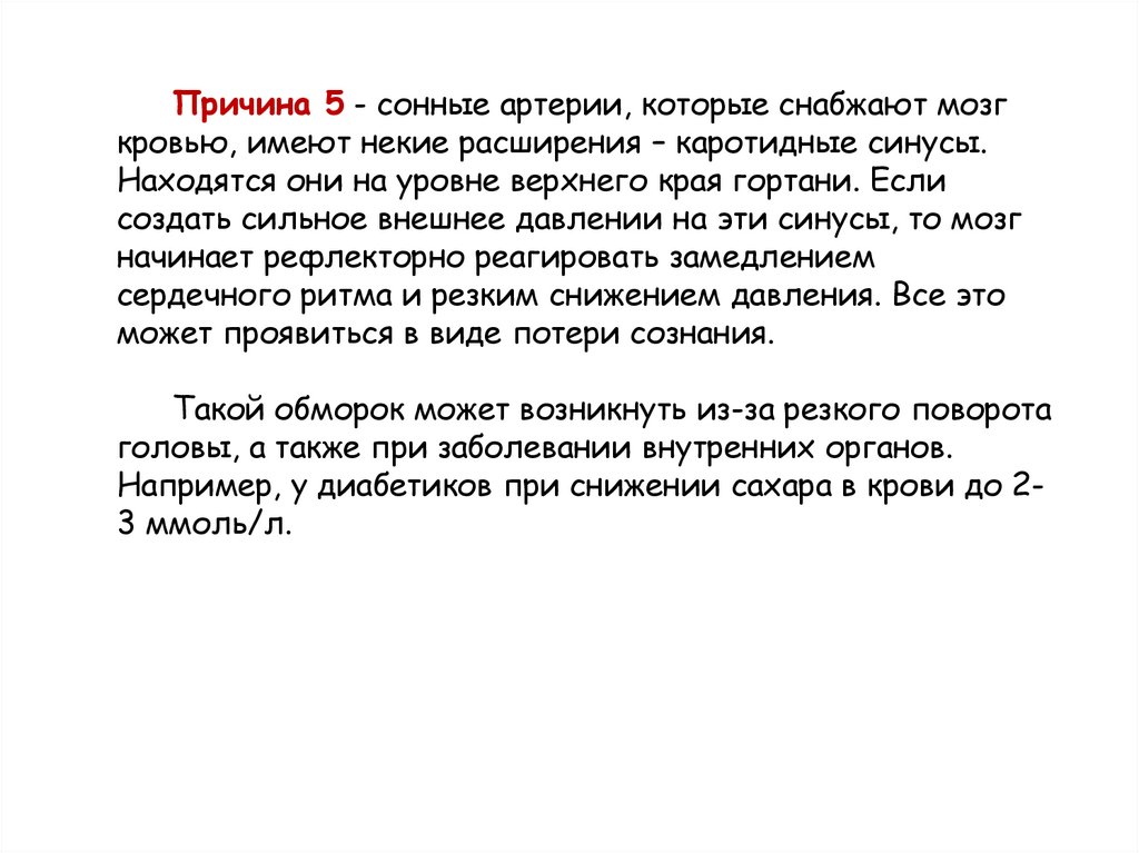 Причина 5 - сонные артерии, которые снабжают мозгкровью, имеют некие расширения – каротидные синусы.
