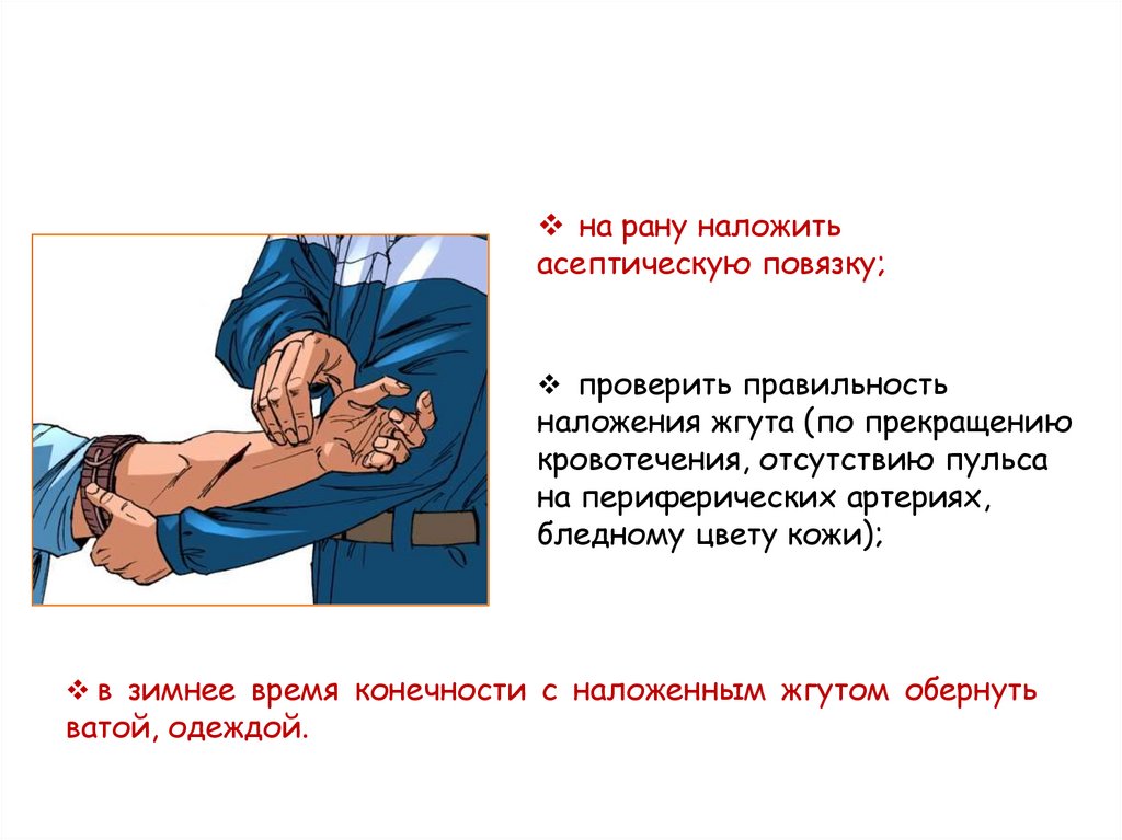 Методика наложения закрутки такаяже, как при наложении жгута: