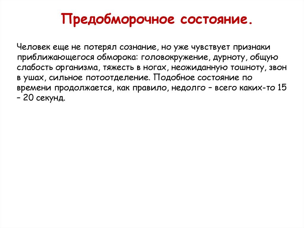 Предобморочное состояние.Человек еще не потерял сознание, но уже чувствует признаки