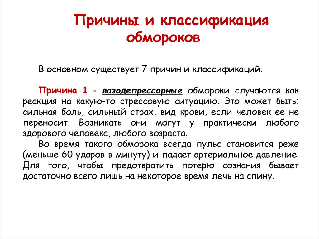 3. Обморок – это внезапная, неожиданная и кратковременная потеря сознания, которая сопровождается при этом падением.