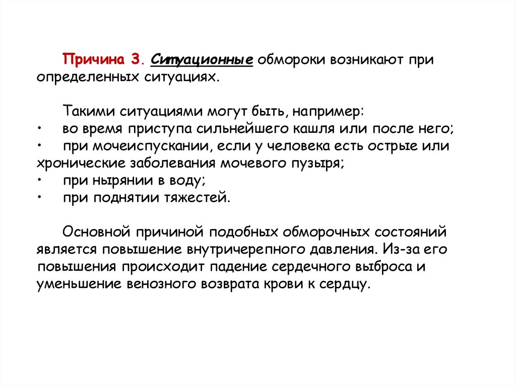 Причина 3. Сит уационные обмороки возникают приопределенных ситуациях.