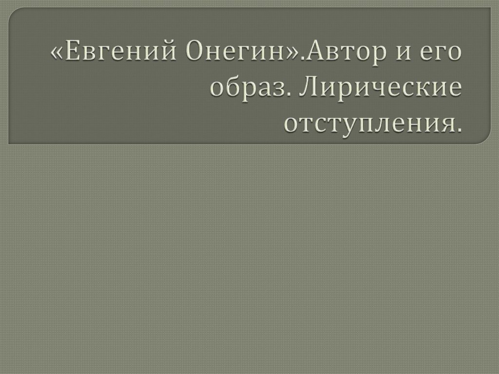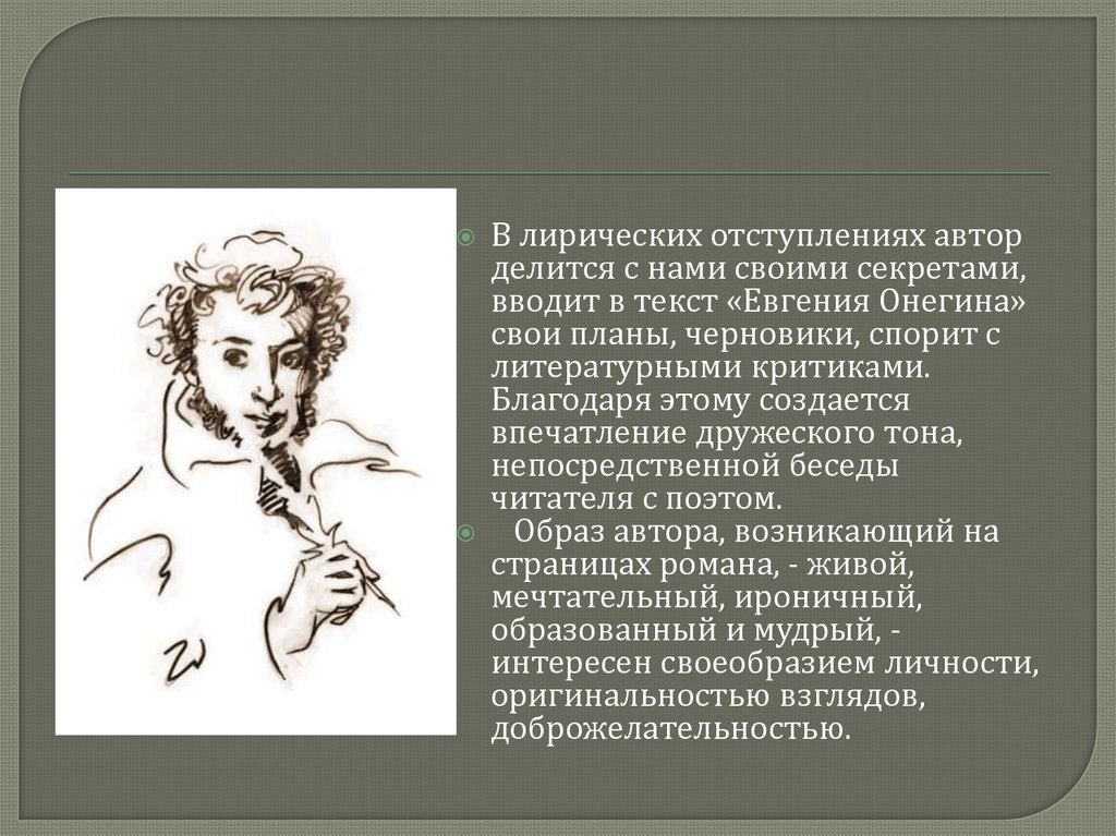 1. «Евгений Онегин».Автор и его образ. Лирические отступления.