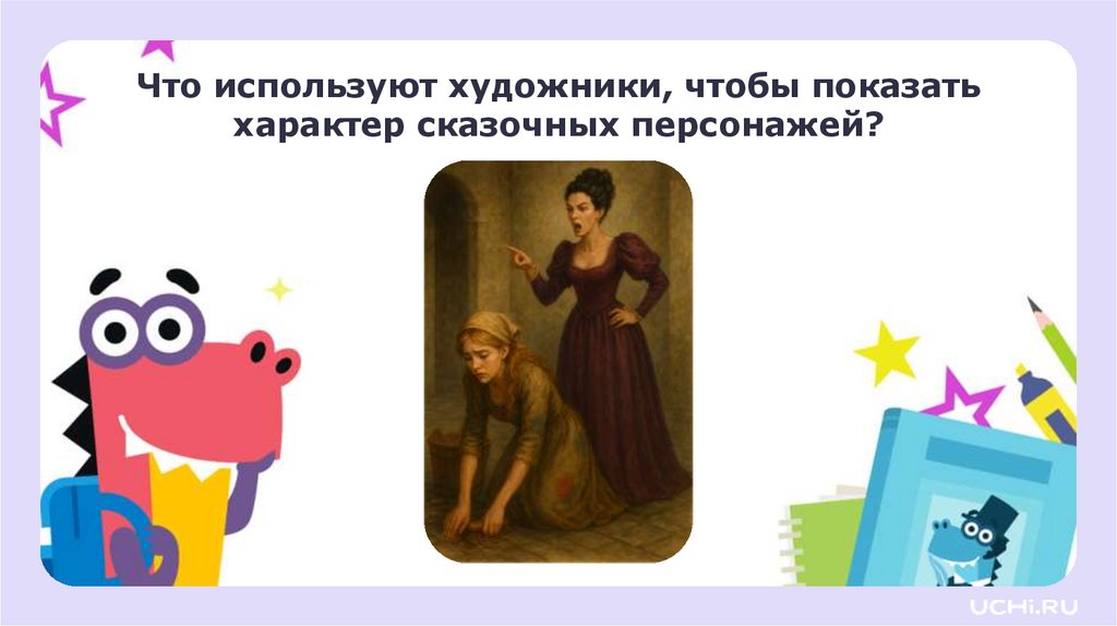 Что используют художники, чтобы показатьхарактер сказочных персонажей?