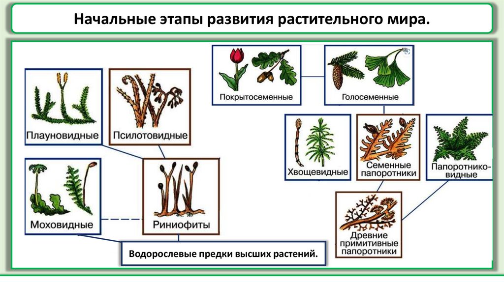 Начальные этапы развития растительного мира.Водорослевые предки высших растений.
