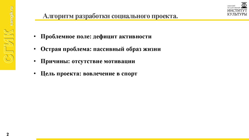 Алгоритм разработки социального проекта.