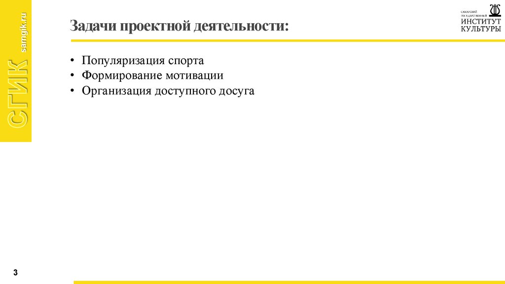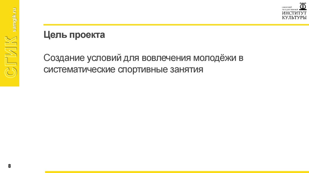 • Цель проекта: вовлечение в спорт