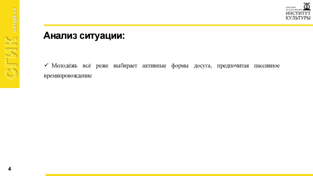 1. Недостаточная вовлечонность молодёжи в регулярные